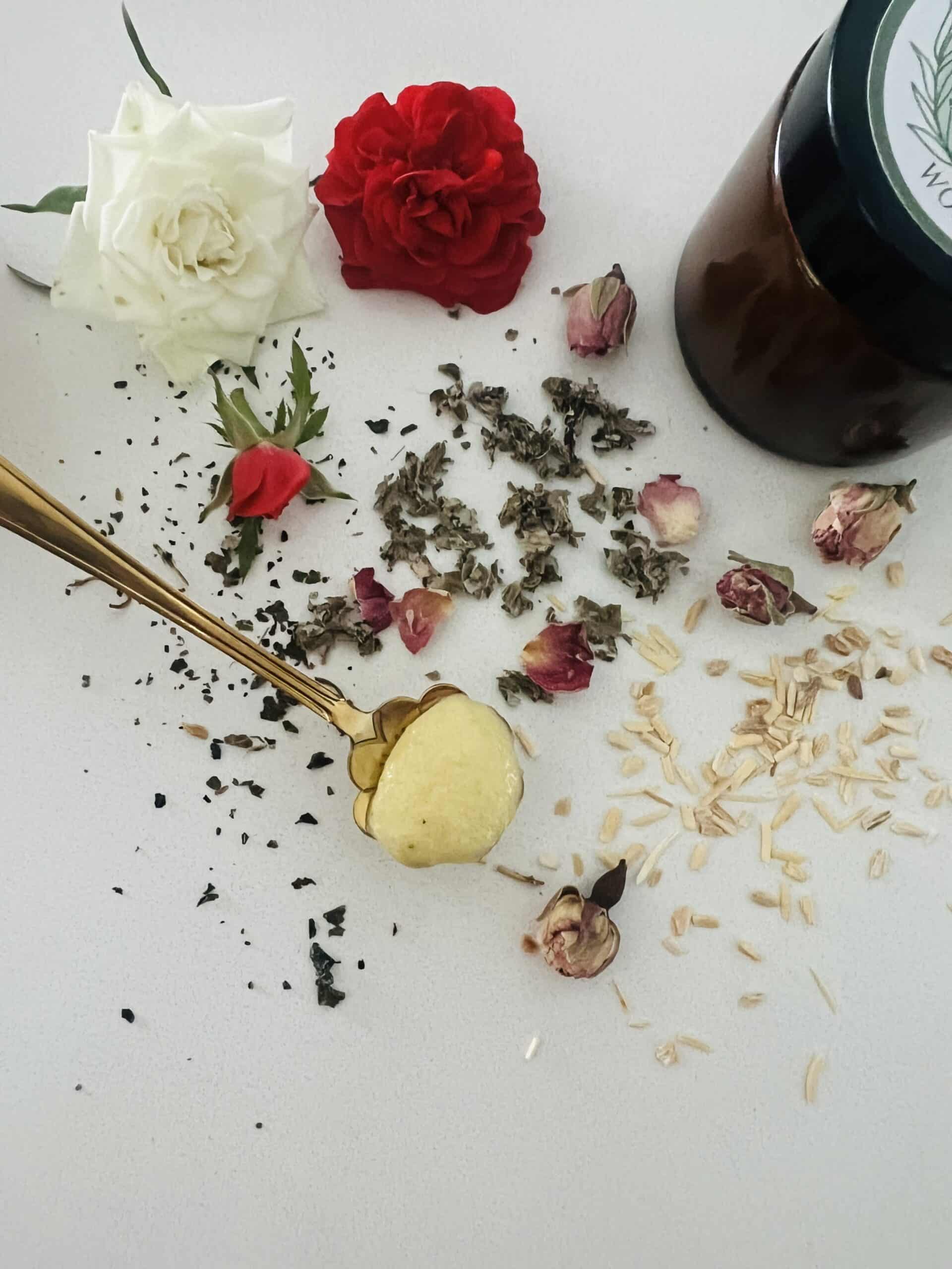 - Homemade Grass-Fed Ghee, Rose Petals, Hawthorne, Calendula, Shatavari, Brahmi